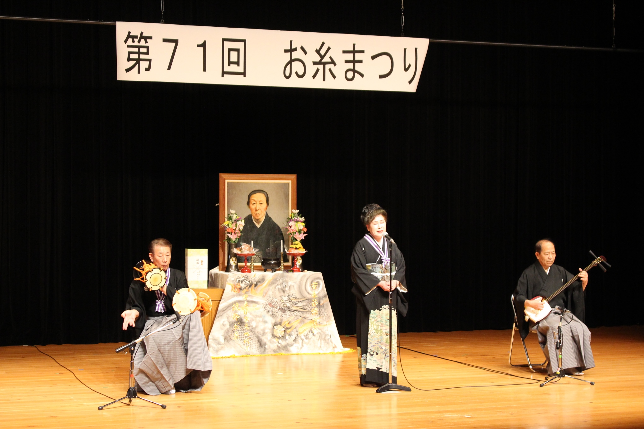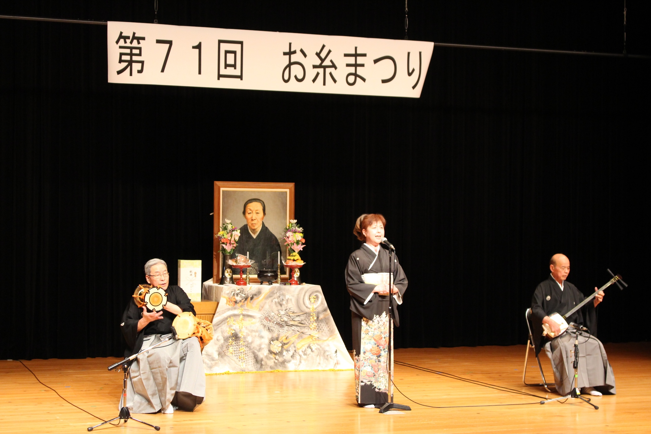 令和7年「お糸まつり」 安来節保存会「お糸まつり」を令和7年4月6日(日)に安来節演芸館にて開催し、多数の方にご来場いただき、誠にありがとうございました。 この「お糸まつり」は、安来節に多大な功績を残され、昭和29年に亡くなられた安来節初代家元である渡部お糸さんを偲んで、その翌年より桜の時期に開催され始め、今年で71回目となりました。