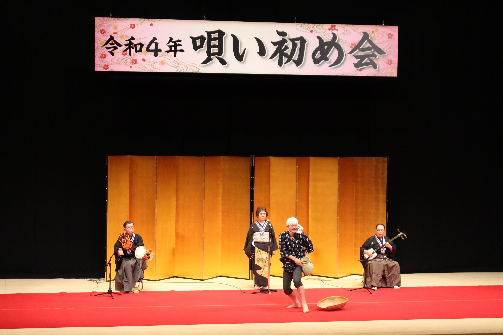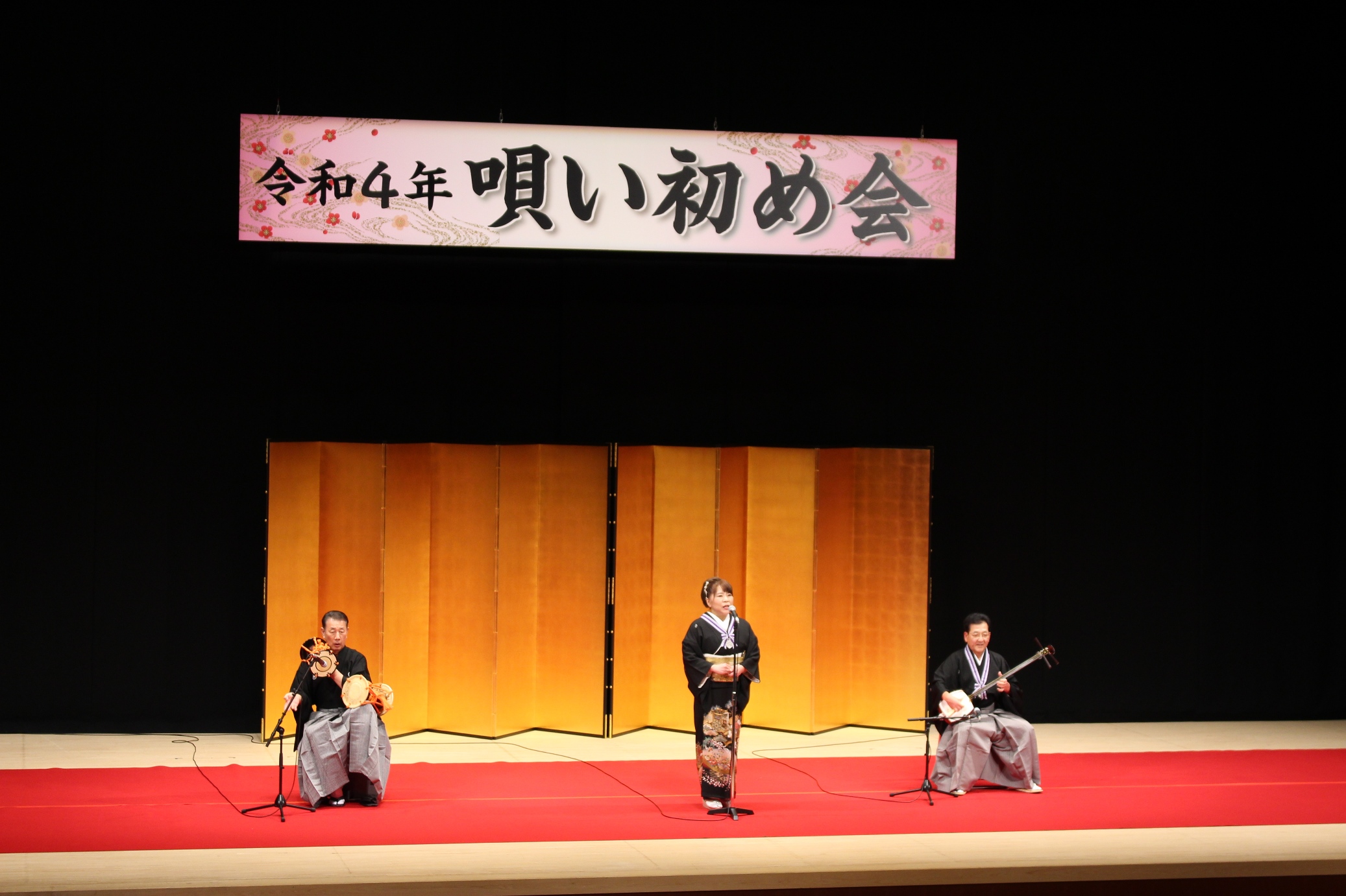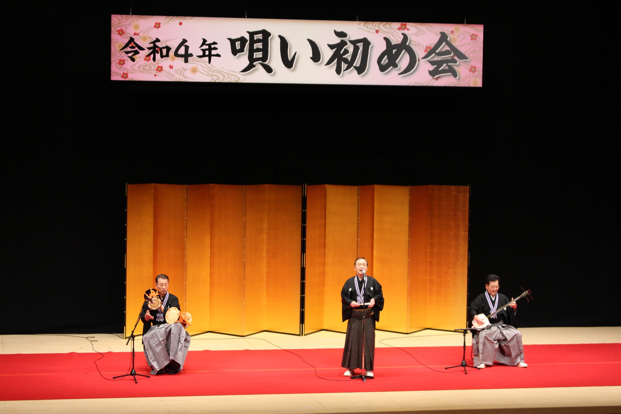 令和4年「唄い初め会」 令和4年1月10日に2年ぶりに「唄い初め会」を開催いたしました。 会場を例年の「安来節演芸館」から安来市総合文化ホール「アルテピア」に変更し、客席の間隔を設けるなど、新型コロナウイルス感染症対策を講じた上の開催でした。 ご来場いただいた皆様には、ご協力をいただき、誠にありがとうございました。 1日でも早く新型コロナウイルス感染症が終息し、通常開催できることを願ってやみません。 上位昇格者免除授与 会員功労者表彰